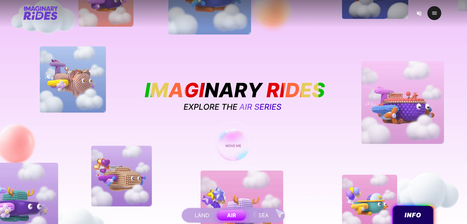 Imaginary Rides is an immersive digital experience combining NFT collectibles with a creative concept centered around imaginary journeys. It allows users to explore, collect, and engage with unique virtual "rides" in various themed worlds. The platform showcases detailed, colorful visuals and offers users ways to personalize their experiences. For more details, visit Imaginary Rides.